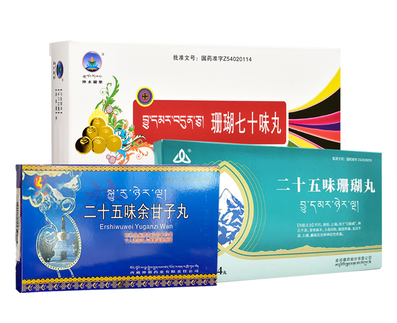 主要成份:珊瑚、珍珠、玛瑙、当归、藏党参、红景天、雪莲花、余甘子、藏红花、黄精、牛黄、人工麝香等七十味。